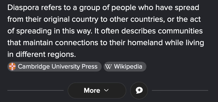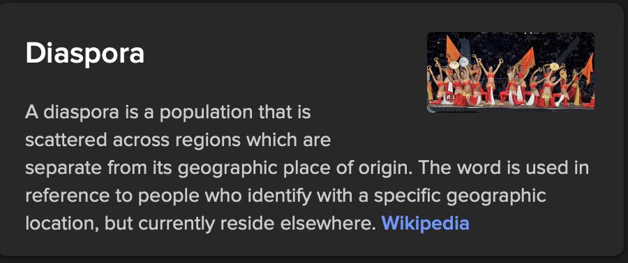I do recall Diaspora though as a word it is new the meaning of the word explaining and communicating not the uprooting, an alienation to once own homestead, but how could that be