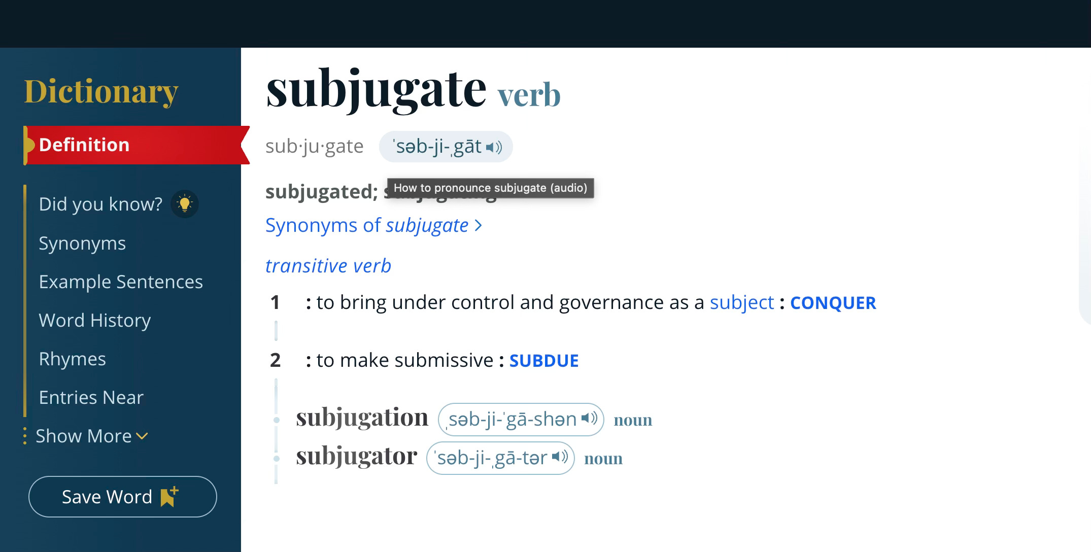 Subjugate Own people SomewhereOct 05, 2025ShareThe word of today SubjugateThis word came along after a question why are Empire/Kingdom destroying their own people; Subjugating is the only thing they have done and the only thing they know to do for Century SUBDUE Vanquish Curb